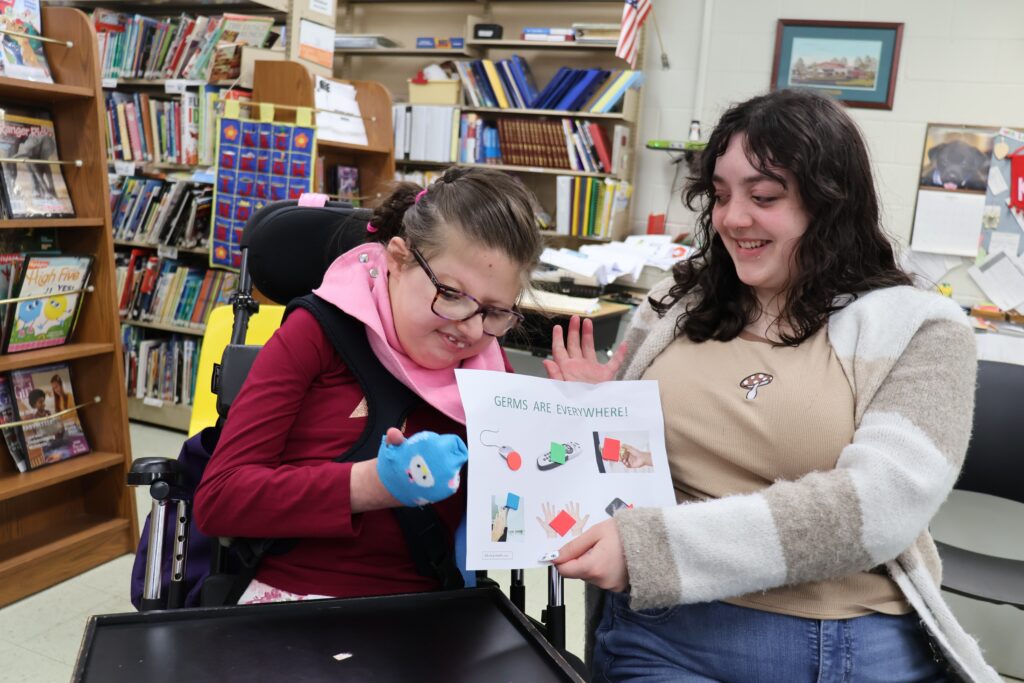 In a recent lesson, students learned all about germs. They discovered that germs are tiny living things you cannot see. While not all germs are harmful, some can make us sick, so it’s important to keep them away. Students explored how germs spread—through hands, surfaces, and the air—and learned ways to stop them. They enjoyed listening to songs about germs, with Sid the Science Kid’s “The Journey of a Germ” being a class favorite. The lesson also included a fun “germ hunt,” where students searched for paper germs hidden around the classroom. They wrapped up the activity by affixing adhesive-backed “germs” onto a worksheet.