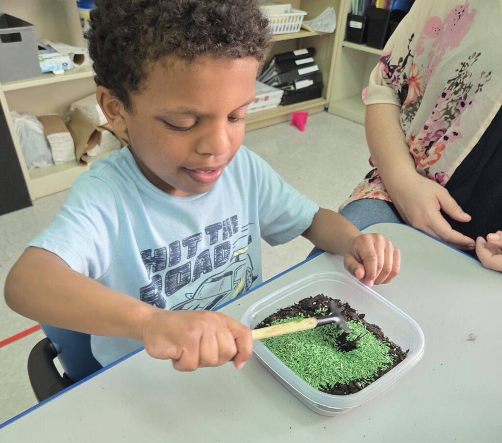 Overall, this was a joyful and enriching experience for everyone. The classroom is now filled with tiny neighborhoods waiting to sprout, and we are all looking forward to watching our little lawns come to life when we return from spring break!