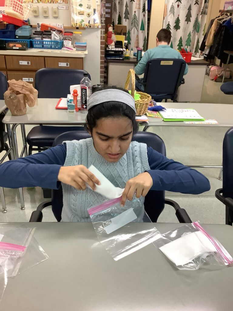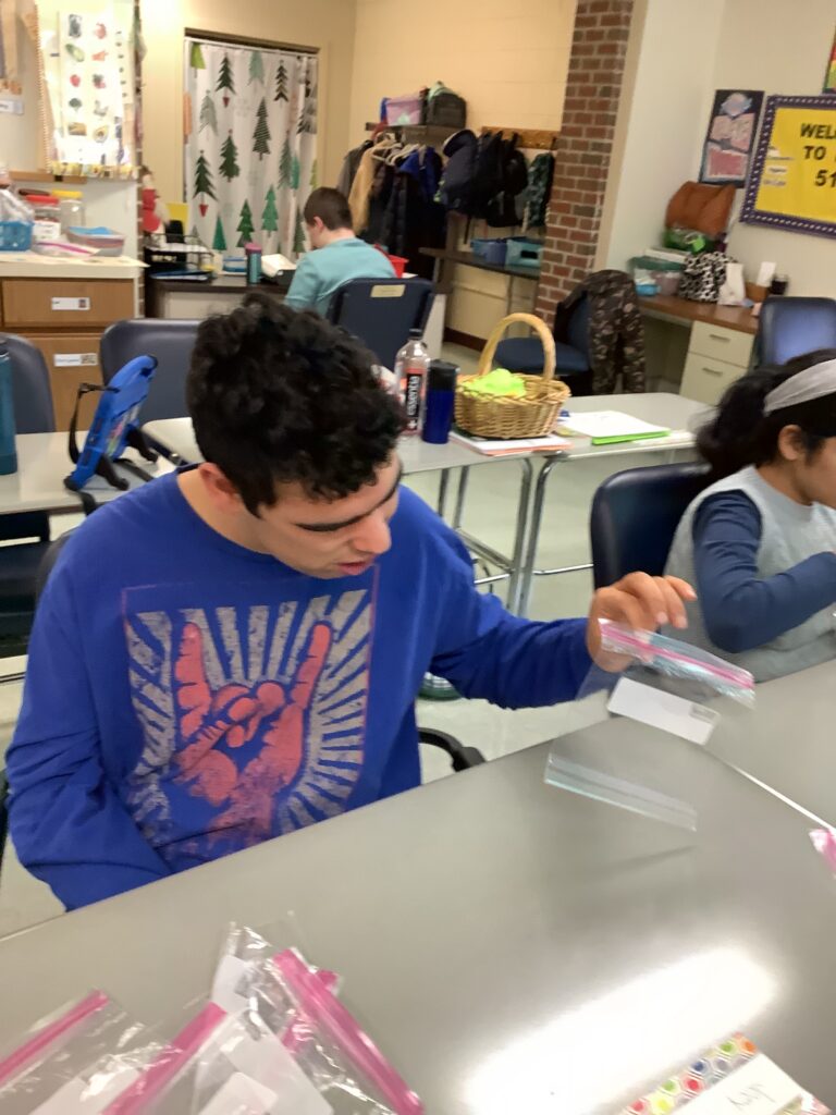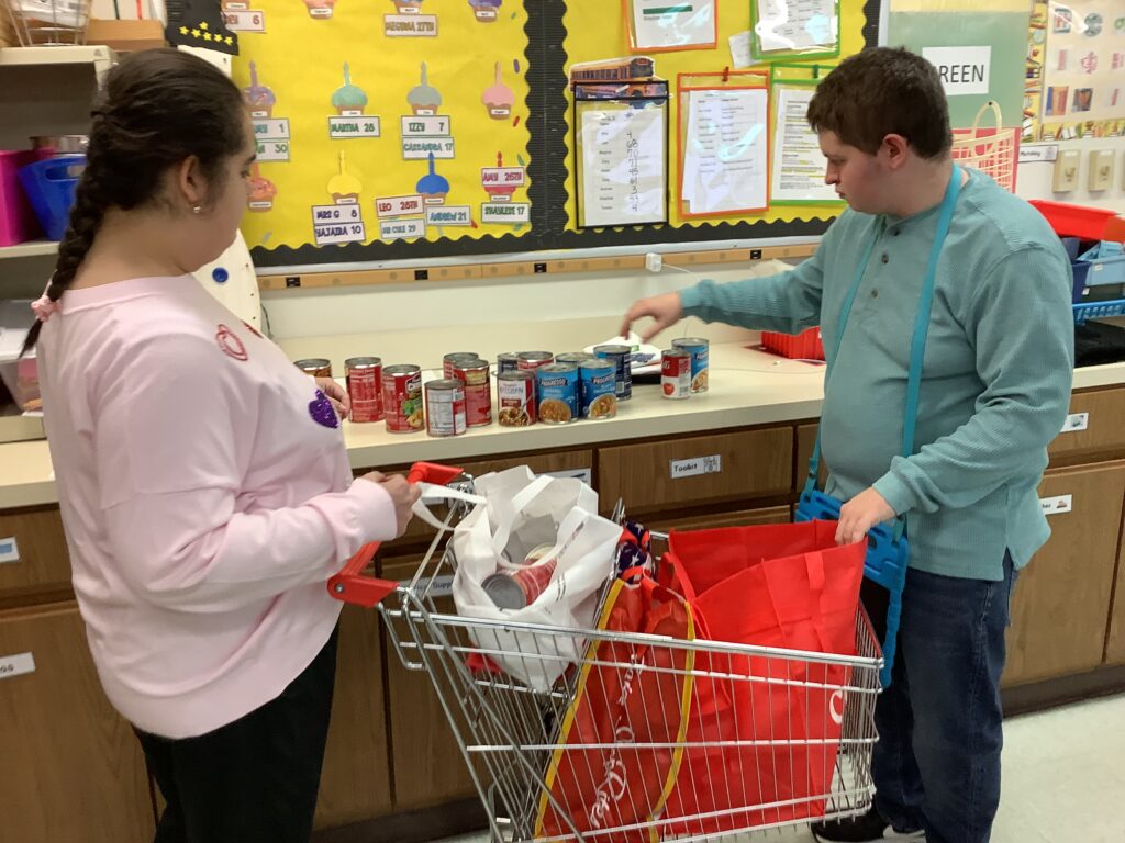 Students in Room 511 played a key role throughout the project. Each morning for two weeks, they visited classrooms and offices to pick up donations and bring them back to be sorted and counted. They carefully organized the cans and prepared each donation by assembling a bag with a spoon and napkin to accompany every can. This hands-on experience allowed students to actively contribute while building independence, responsibility, and collaboration skills.